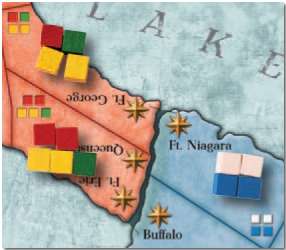 The Fort Erie and Queenston area has two Objectives in it. If the Americans control this area, two American Control Markers are placed on it.
