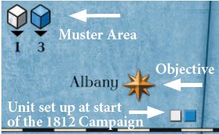 Ex: Shown is the Albany area which is a Muster Area for American Militia and American Regular units.