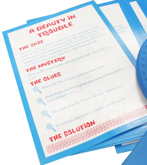 When the Guesser is ready to solve the mystery, s/he hands the Giant Mystery Decoder to the Reader to see if s/he is right.