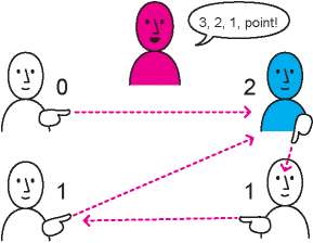 After the 2nd round, the QM will count down from 3. The artists must then point to who they believe is the fake artist.