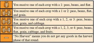 This is why each exploration board that has not been claimed by a player is turned to its back side at some point. A symbol below the harvest notes on your home board indicates when to turn each exploration board.