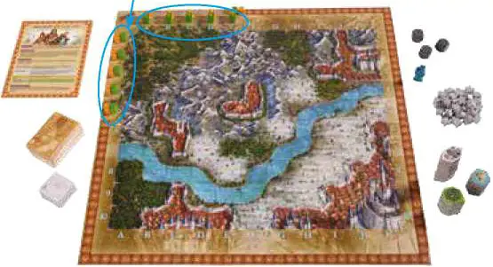 1. Turn over 2 terrain cards and place items on the game board