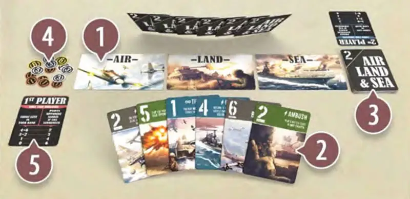 Air, Land, & Sea is played over a series of rounds called Battles. To win a Battle, you must either: