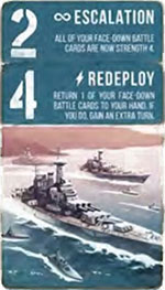 Face-down Cards: Battle cards can also be played face-down as a "wild card" in any Theater. Face-down cards always have a Strength of 2. Face-down cards do not have any Tactical Abilities.
