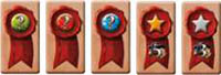 Gold-starred seals earn you 5 victory points at the end of the game and silver-starred seals earn you 3, but only if the theory is correct. If the theory is wrong, you lose victory points. Or you can lose reputation points if someone debunks the theory during the game.