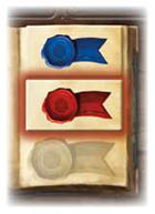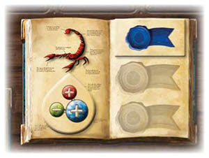 To publish a theory, pick up one of the alchemical tokens and place it on one of the books on the theory board. This is your public statement about the true identity of the ingredient depicted on that book. To mark it as yours, place one of your seals face down on any of the seal spaces.