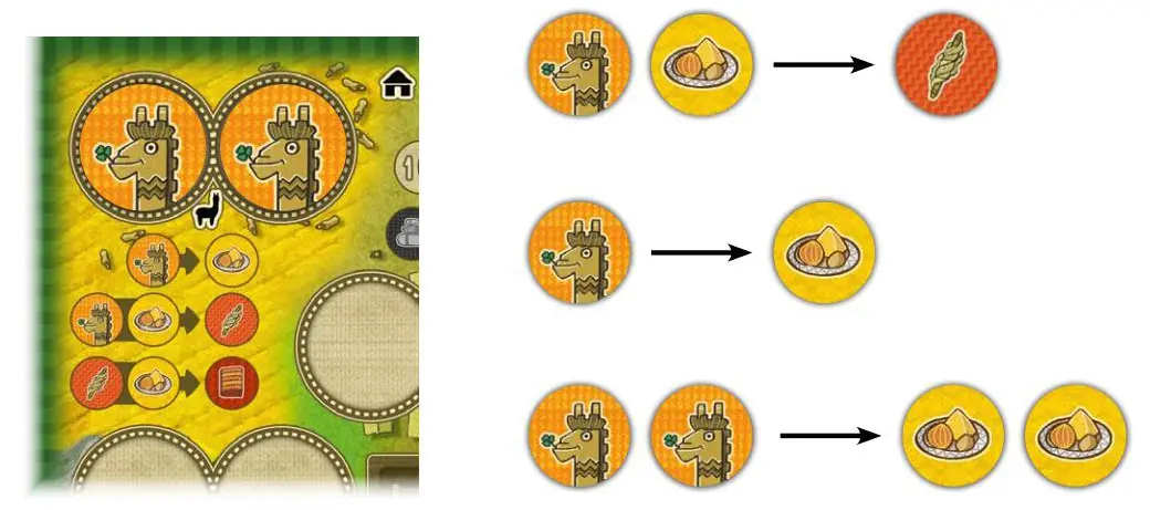 Produce wool: Use 1 alpaca and 1 food to gain 1 wool from the farm.