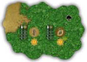 - Put all 36 food tiles and 50 coins in the center of the plateau (i.e., between all of the location tiles). This is the supply.