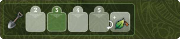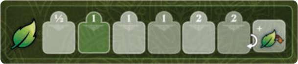 If you choose to take Tea Leaves, you receive a number of them from the general supply equal to the position of the marker on the Crop Harvest track (1 or 2). If the Crop Harvest track is on the leftmost space (1/2), you cannot take Tea Leaves.