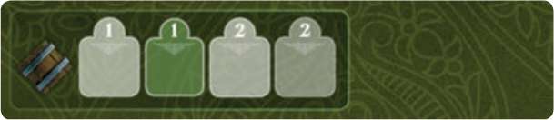 3 According to the number of players, place a blockage tile on one or more spaces at the end of the Chai track. For example, in a 3-player game, block off the last two spaces.