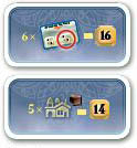 Tea bonuses: Move the indicated number of Tea Leaves from your personal supply onto the Contract card and gain the indicated number of points. If you cannot move enough Tea Leaves, leave them in your personal supply and score nothing for the Contract card.