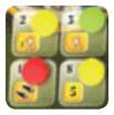 11 For each space on the Tea Estate cards, take a number of Rubble cubes from the supply as indicated by the number next to the shovel and place them on the space. For spaces requiring five or more Rubble, make use of the "5 Rubble" disks for convenience.