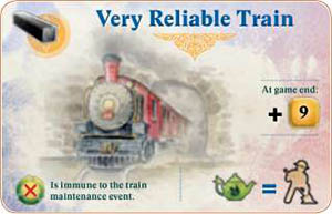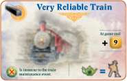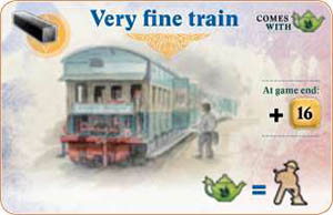 Any bonus or effect of the Equipment applies immediately after you have built it. You may own more than one Equipment, but each is subject to maintenance (see Events). Each Equipment is worth 9 points at the end of the game (16 for the Very fine train).