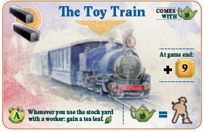When the railway is completed, the player who has contributed the most to the railway, the building of the towns along the way, and the most auspicious Tea Estates will be declared the winner.