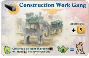 Provides a discount of 2 x Rubble or 1 x Stone when building in Rubble or Stone Station spaces respectively.