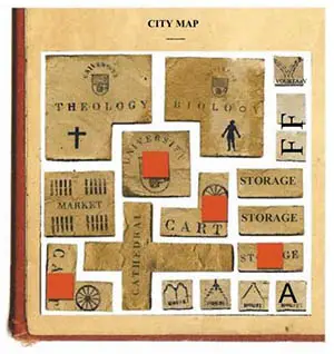 Each player may build any of the buildings listed on the player aid. Most buildings can be built only once per player. Exceptions are Stores, Cart Shops, Fountains, and Houses. A Cathedral can be rebuilt only if it has been razed (by the Faculty of Theology). Other buildings can never be rebuilt, not even if the original building has been incapacitated by graves.