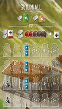 Either place a Worker from their supply on top of 1 of their previously placed Workers in the Guildhall, or place a Worker at the middle space of the Black Market (this costs 2 Silver and 1 Virtue, rather than committing a Worker to the Guildhall permanently).