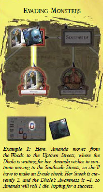 Example: In the example above, if Pete successfully evades the Star Spawn, he could choose to remain in the Northside area without fighting it for now. However, once the next Movement Phase takes place, he'll have to deal with the Star Spawn once more (by either evading it again or fighting it).
