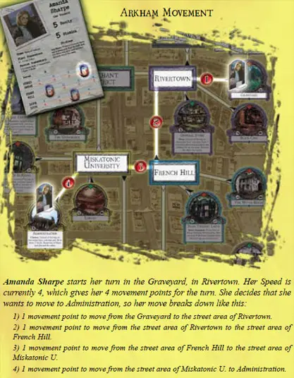 If the player's investigator is located in Arkham (i.e., his investigator marker is in the town area of the game board), he receives movement points equal to his Speed value, as found on his investigator sheet.