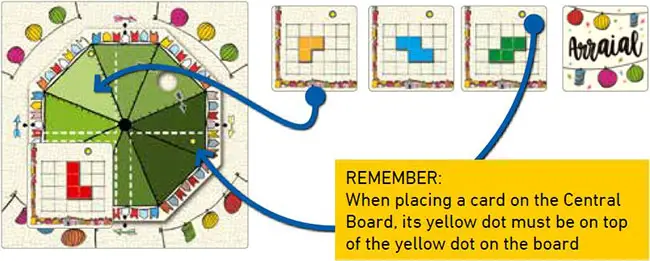 Draw 3 Color Piece cards and place them face-up next to the Central Board.
