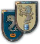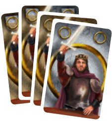 1 set of cards: Each player sorts his cards according to their backs into the three piles: Knight cards (helmet), King cards (crown) and scoring cards (scroll).