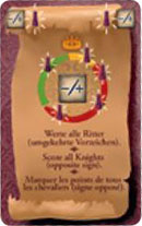 The player who plays this card must score all of his Knights (all four in a 4 player game or all five in a 2 or 3 player game).