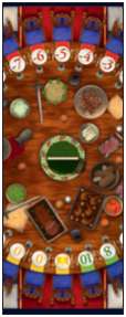 Now, using the suckling pig, rotate the table so that the plate with the crown is immediately adjacent to King Arthur. It will remain there for the rest of the game. Should the King move or a new King be crowned, then the rotating board is immediately rotated to suit the new King's location.