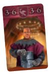 The player who plays this card must choose two of his Knights located on any two of the six chairs on the carpet (see figure) and score them, moving his scoring marker forwards or backwards the corresponding amount.