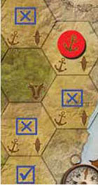 Going in reverse player order, (i.e. from the last player anti-clockwise to the first player), each player places their Port disc in a Coastal hex that contains the Port symbol.