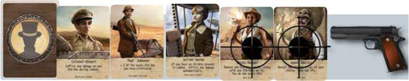 Shuffle the Personality cards and draw the top five cards to form a display. The order in which the cards are drawn is important. They should form a line going from left to right, with the right-hand side being the end of the line. Place the remaining cards as a draw deck to the left of the display.