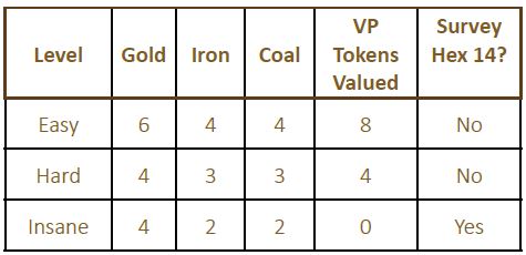 - In addition to the survey, at setup, place 3 VP and 5VP tokens in the hexes indicated.