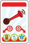 Play the music card as a reaction to a nervous baby or a baby made unhappy by the horn. Put it underneath the baby. As long as this card is in play, it will prevent your baby from crying, until a broken music card is played to counter this card. The music does not remove the nervous baby card or horn.