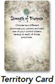 Randomize Territory Cards: Place one random card from each territory facedown under the matching territory space along the edge of the game board. All territory cards not placed under the game board are returned to the game box.