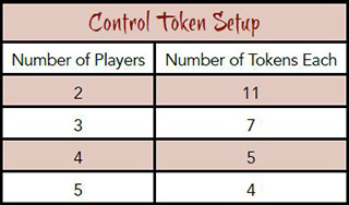 Set Aside Control Tokens: Each player sets aside the number of control tokens indicated by the "Control Token Setup" table to the right. These set-aside tokens will be placed during step 10.