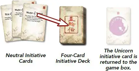 Complete Initiative Deck: Shuffle the neutral initiative cards (the ones that do not have a clan icon). Add these cards to the remaining cards in the initiative deck, one at a time, until the initiative deck has a total of four cards. (For a five-player game, no neutral initiative cards are used).