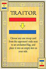 Traitor: The player may choose anyone Troop card (but not a Tactics card) from the opponent's side next to an unclaimed Flag, and places it into an empty slot on his own side.