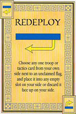 Redeploy: The player chooses anyone Troop or Tactics card from his side next to an unclaimed Flag, and places it face up into another of his available slots, or discards it face up on his side next to the Tactics card deck. Do not cover any other discard.
