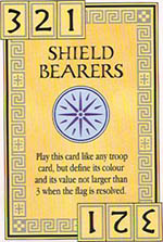 Shield Bearers: Play this card like any Troop card, but define its color and its value not larger than 3 when the Flag is resolved.