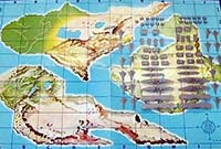 In TASK FORCE, the game is made more complex by requiring the player to first determine which one of three islands house the opponent's Head Quarters and then demolish all pieces on the island or above it in the air.