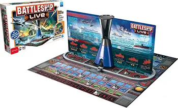 BATTLESHIP LIVE has a talking, motion-sensing tower that guides you through the game. A special camera in the tower "sees" reflective material on the ships and special gameboard spaces.