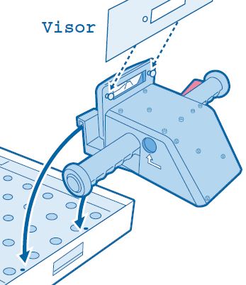 The torpedo launchers: Slot a torpedo launcher onto each end of the grid by fitting it into the ocean grid holes. Then clip a visor onto the back of each periscope.