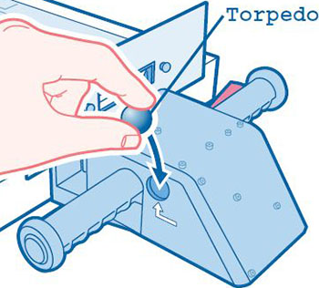 Secretly position your 5 small ships onto the bottom half of your torpedo launcher. Your opponent does the same. Ships must be positioned horizontally or vertically, never diagonally.