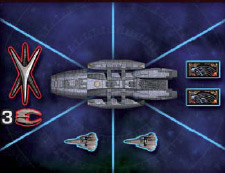 Set Up Ships: Place one basestar and three raiders in front of Galactica. Then place two vipers below Galactica and two civilian ships behind Galactica (as shown right).