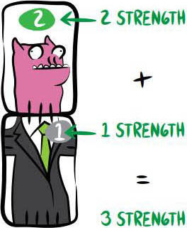 Notice that you can build multiple Monsters of the same type and add their strengths together because all your Monsters of the same type will always fight together!
