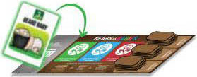 This green Baby Card goes face-down on the green color blockDraw a new card to replace it so you still have five cards; repeat as necessary.
