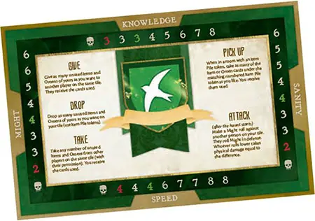 As soon as you find an Item or Omen, you have access to the actions on your Family card other than ATTACK. Items, Omens, and tiles will grant you additional actions. You can take the actions granted by Items or Omens only while you are carrying them and they are unused, and can take the actions granted by tiles only while you are on those tiles. Most haunts will also give you actions you will use to win the game.