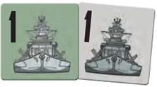The Axis player previously placed a 1-strength navy token and moved the battle marker one space in her favor. The Allied player now places a 3-strength army token and moves the battle marker three spaces in his favor.