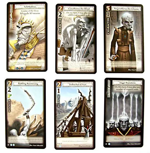 When you begin to play, both players select the leader of one of their prepared decks and reveal these simultaneously. If you play more than one game, start each new game in this way. Then the player who first reaches a total of at least five crystals is the final victor.