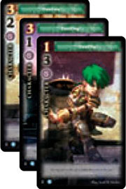 Each people set contains one leader and a deck of 30 cards consisting of four principal card types which are stated on the left side of the card: leadership cards, character cards, booster cards and support cards.