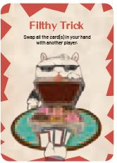When you play a Hit Card, place it face up in front of your targeted player. But you can not place the same type Hit card in front of one player. If any player receives FOUR DIFFERENT TYPE of hit cards, he is eliminated from the game.